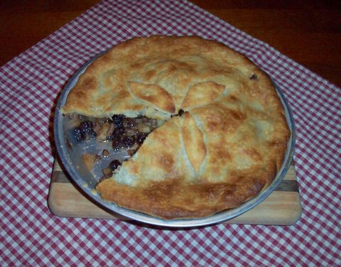 By the way, Child wasn't being careless when she gave her recipe the name "Mince Pies." She was writing at the tail end of the brick-oven baking era, when people fired up their bake ovens twice a week at most. This meant that when they did get the ovens going, they tended to make things in much larger quantities than we're used to now. Child specifies amounts of ingredients that would easily suffice for six pies. We wanted only one pie and adjusted the ingredients accordingly.